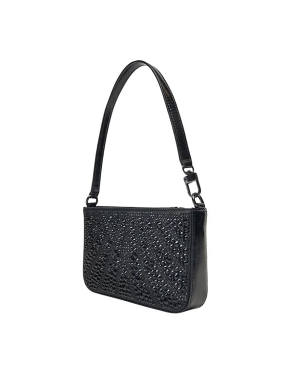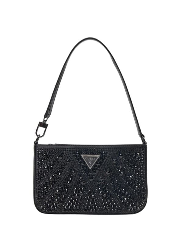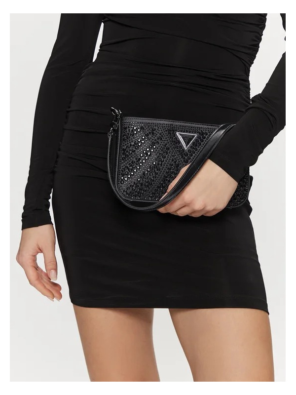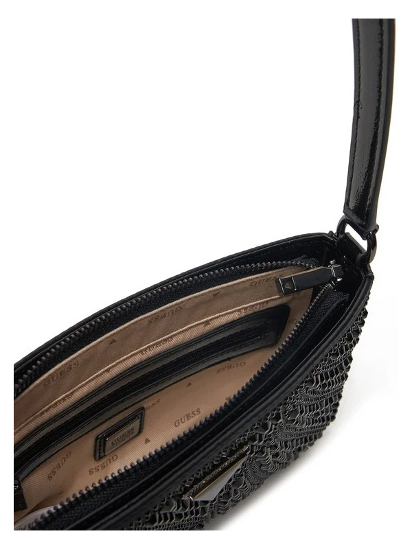 Ženska crna Guess Beauveir torbica za rame s cirkomima i logom