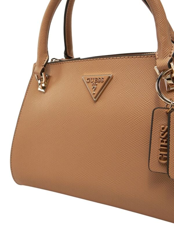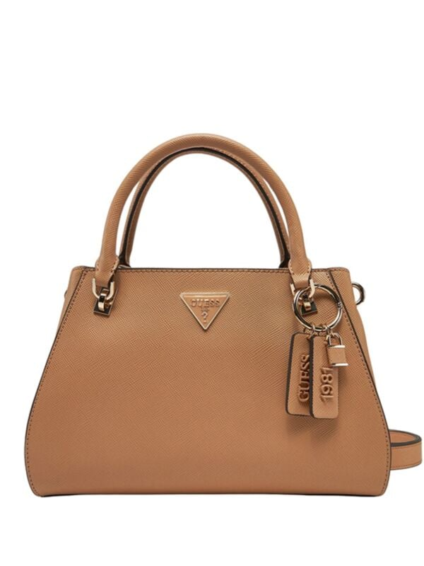 Ženska smeđa Guess Noelle torba s privjeskom, duplim ručkama i podesivim remenom