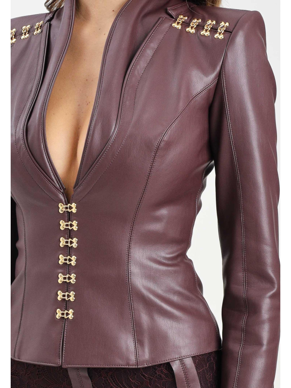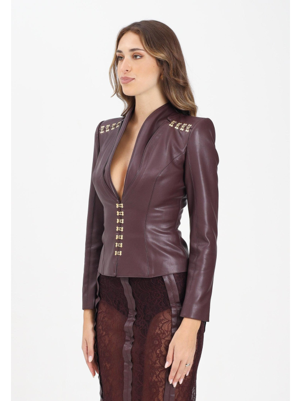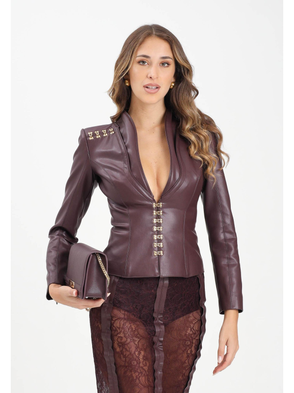 Ženski Elisabetta Franchi bordo sako s kukicama ukrašenim draguljima