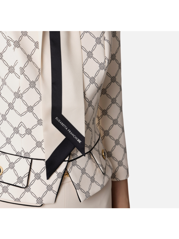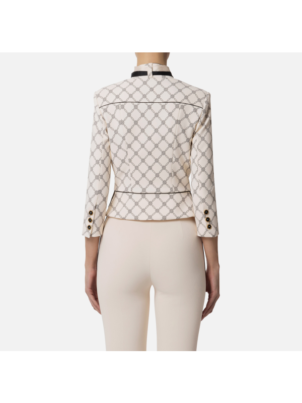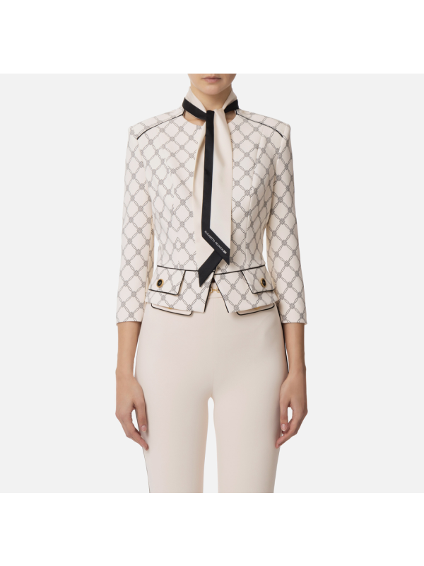 Ženski Elisabetta Franchi sako od rastezljive krep tkanine s uzorkom u svijetloj bež boji s crnim detaljima