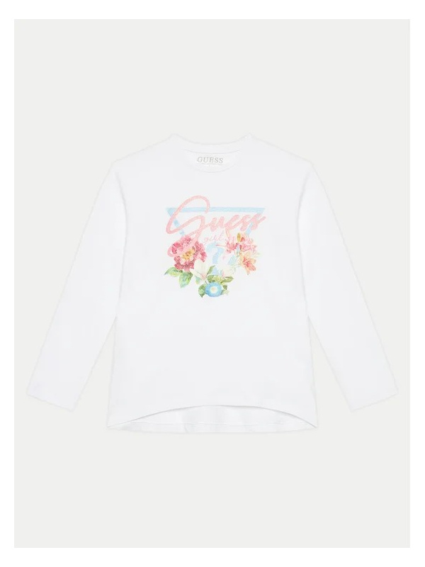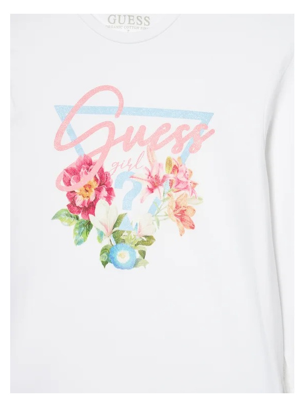 Pamučna bijela Guess majica dugih rukava za djevojčice s printom na prsima