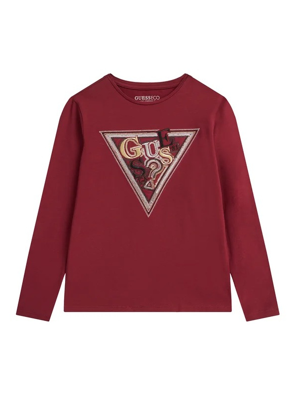 Tamnocrvena Guess majica dugih rukava za djevojčice s logom na prsima