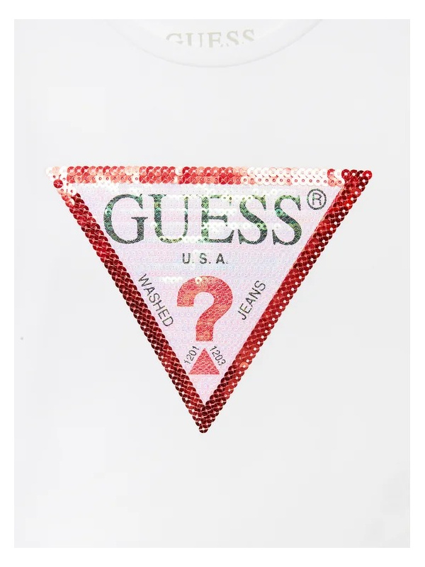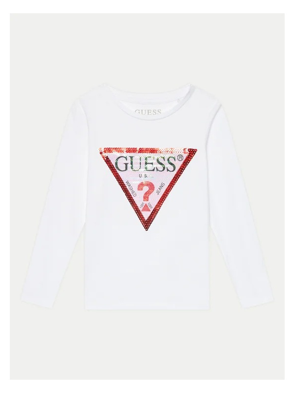 Pamučna bijela Guess majica dugih rukava za djevojčice s printom na prsima