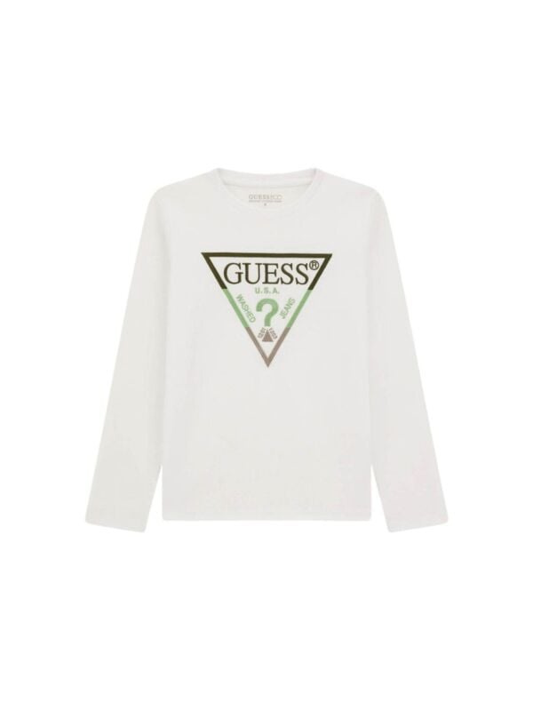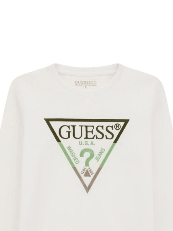 Pamučna bijela Guess majica dugih rukava s logo printom