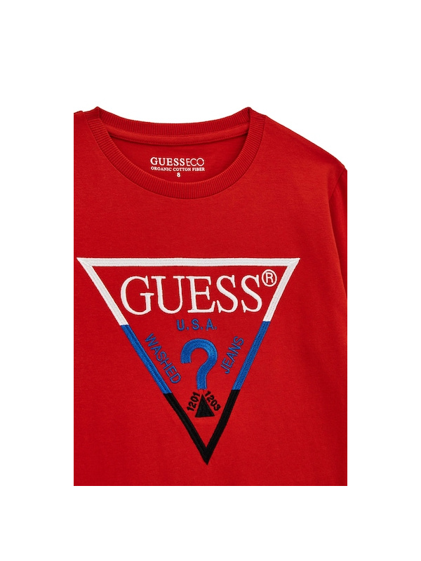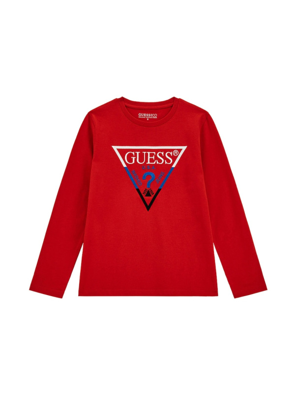 Crvena pamučna Guess majica za dječake dugih rukava s logom na prsima