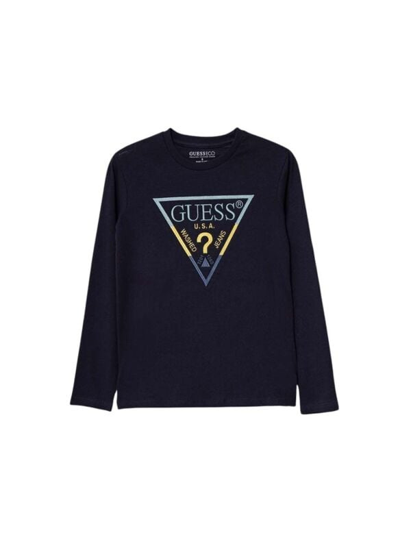 Tamnoplava dječja Guess pamučna majica dugih rukava
