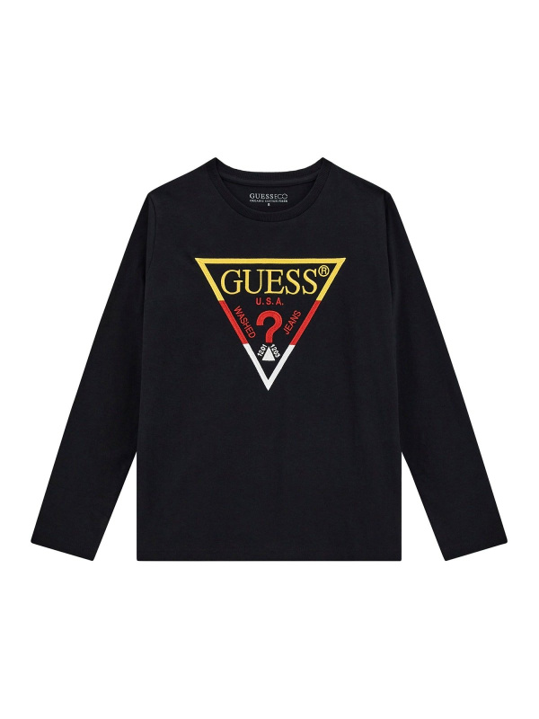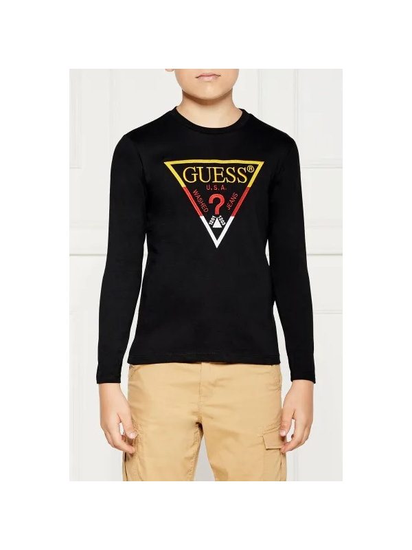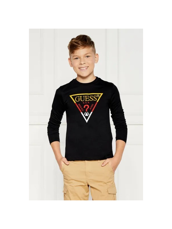 Crna pamučna Guess majica za dječake dugih rukava s logom na prsima