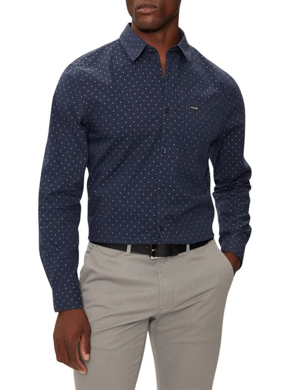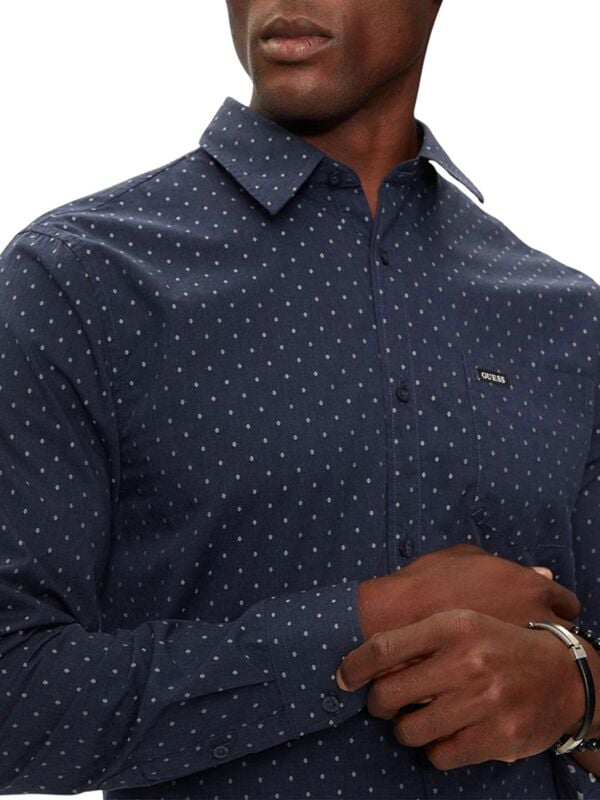 Muška pamučna teget plava Guess Sunset košulja s mikro printom