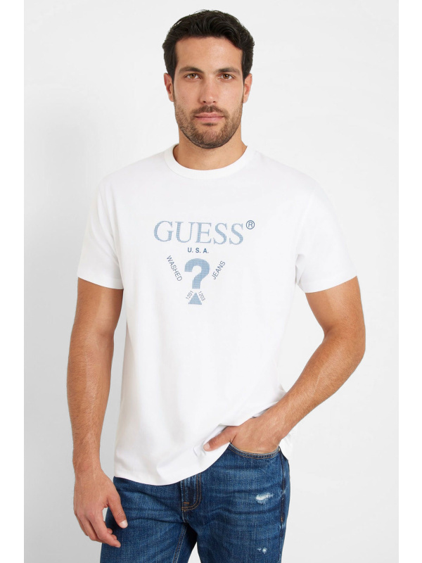 Muška bijela Guess majica kratkih rukava s logo printom na prsima