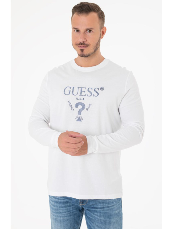 Muška bijela Guess majica dugih rukava s logom na prsima