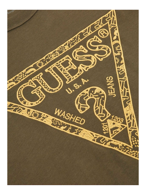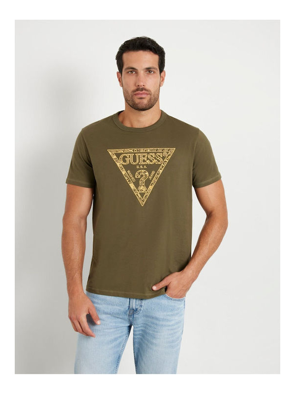 Muška maslinasto zelena Guess majica kratkih rukava s logo printom na prsima