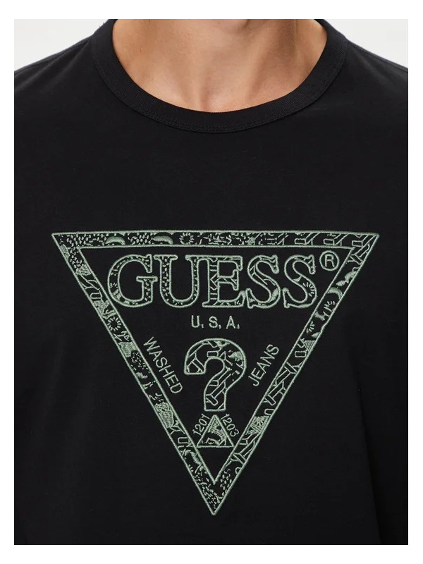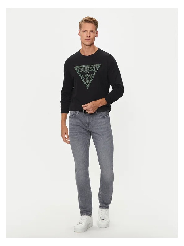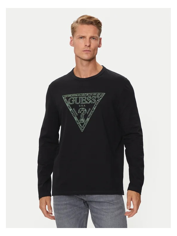 Muška crna pamučna Guess majica dugih rukava s logo printom na prsima