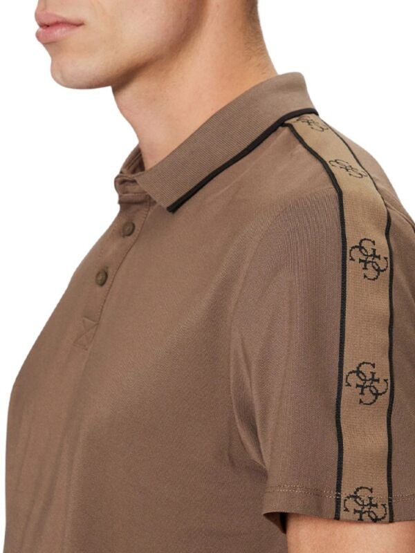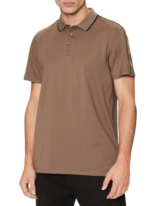 Muška smeđa Guess polo majica kratkih rukava s logo trakom na ramenima