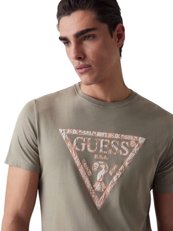Muška maslinasto zelena Guess majica kratkih rukava s logo printom na prsima