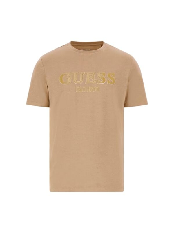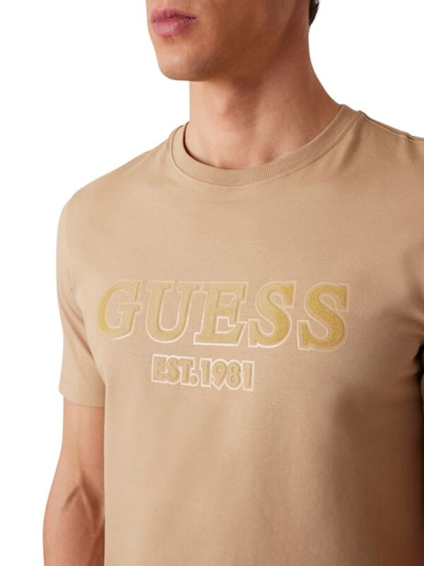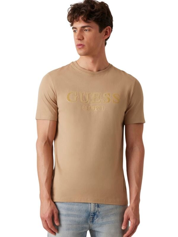 Muška pamučna bež Guess majica kratkih rukava s logom na prsima
