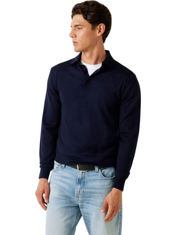 Muški tamnoplavi Guess polo pulover s dugim rukavima
