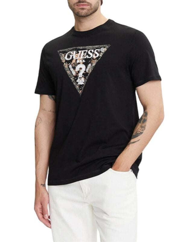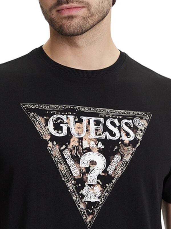Muška crna Guess majica kratkih rukava s printom na prsima