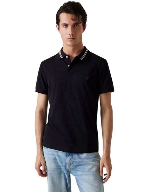 Muška crna Guess polo majica kratkih rikava s logom