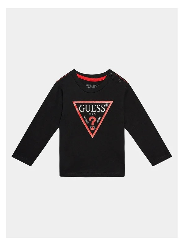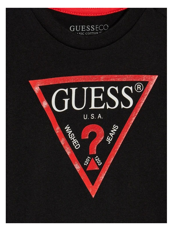 Pamučna crna Guess majica dugih rukava s logo printom za dječake