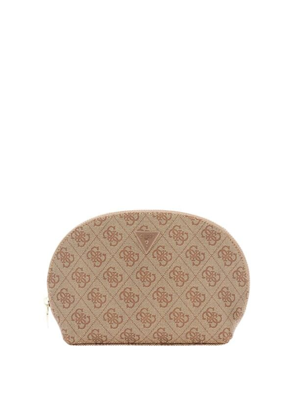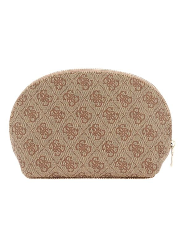 Ženski smeđi Guess Zamira neseser sa zipom i all-over monogramom