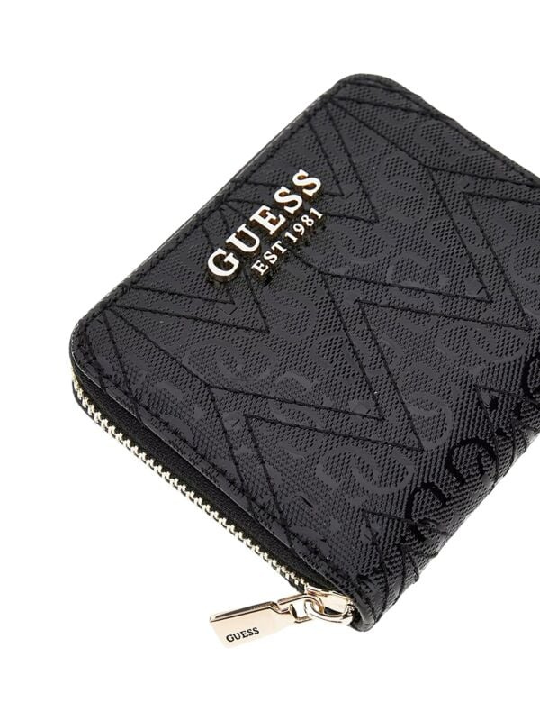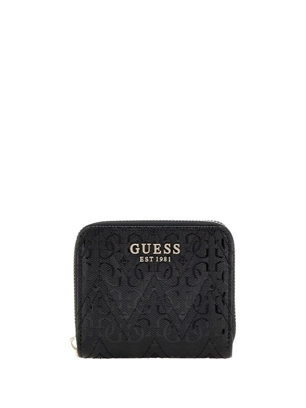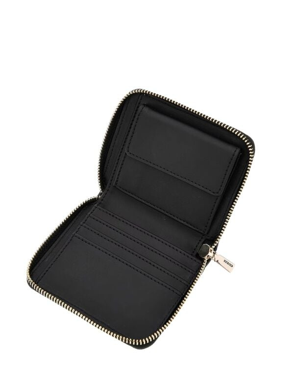 Ženski crni prošiveni Guess novčanik sa zip kopčanjem