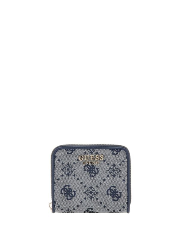 Ženski plavi Guess novčanik s all-over monogramom.