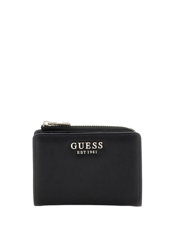 Ženski crni Guess novčanik s logo znakom i dvostrukim pregradama za kartice