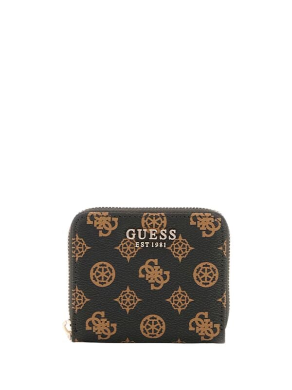 Ženski tamnosmeđi Guess Laruel novčanik sa zipom i all-over monogramom
