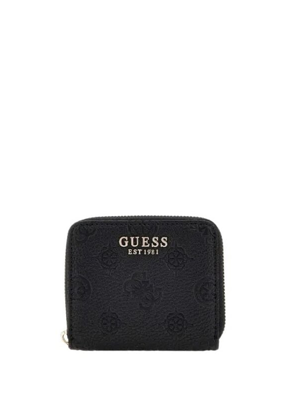 Ženski crni Guess novčanik sa zipom, više pregrada i 4g logo printom