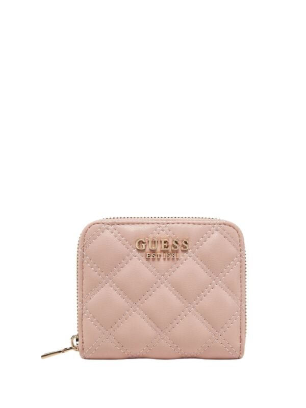Ženski puder-rozi Guess Giully novčanik s prošivenim detaljima i zip kopčanjem