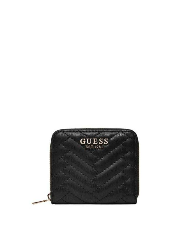 Ženski crni Guess Anning prošiveni ženski novčanik sa zipom i logom