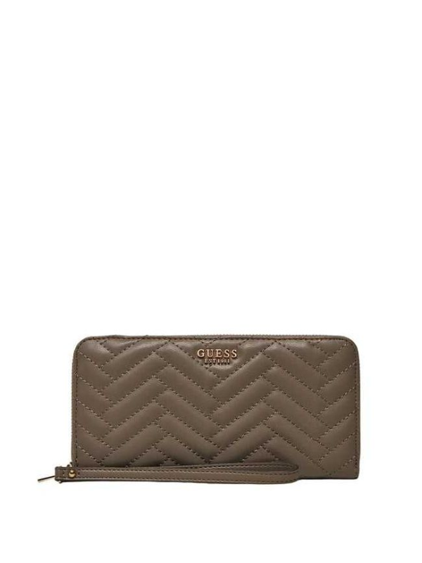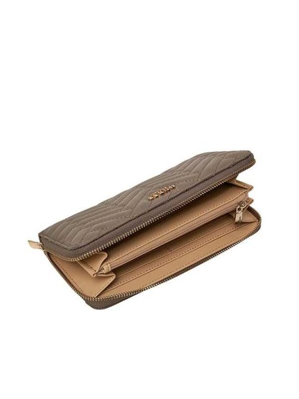 Ženski prošiveni veliki smeđi Guess novčanik na zip kopčanje