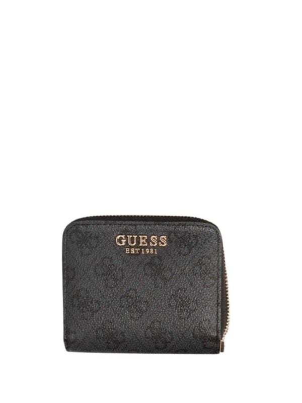 Ženski crni Guess preklopni novčanik sa zipom i više pregrada i all-over monogramom