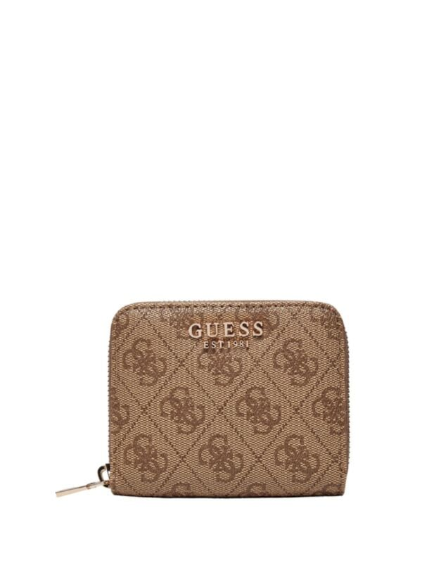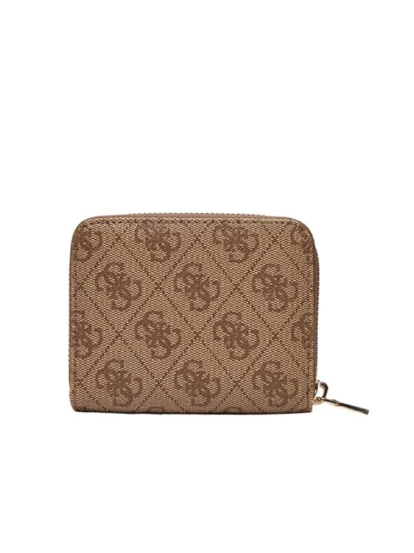 Ženski smeđi Guess novčanik sa zipom, više pregrada i all-over monogramom