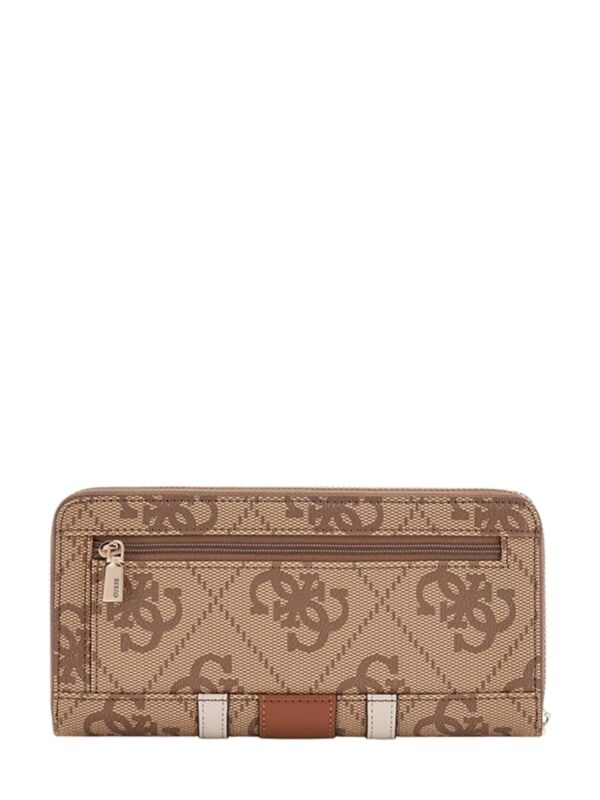 Ženski svijetlosmeđi Guess novčanik s all.over monogramom i zip kopčanjem