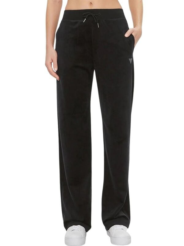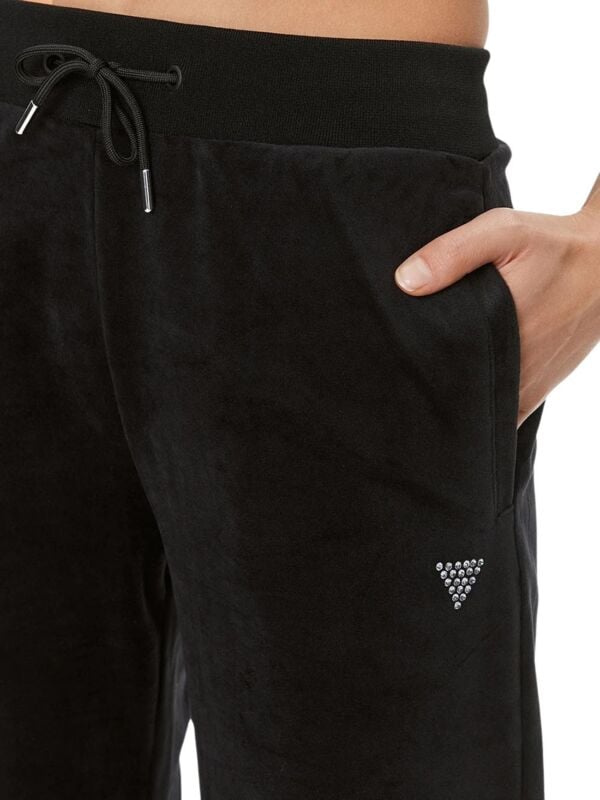 Donji dio crne Guess Athleisure Couture plišane ženske trenerke
