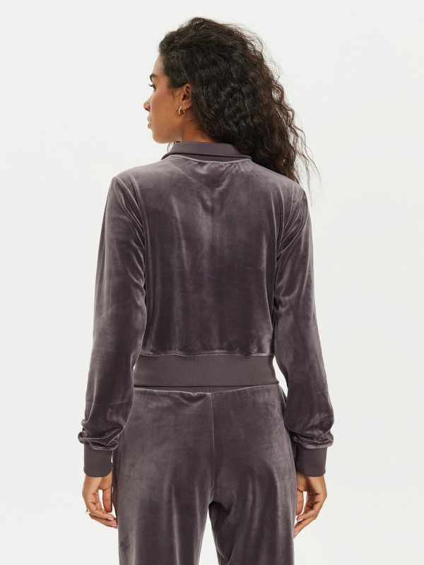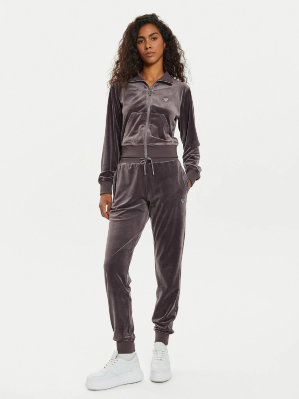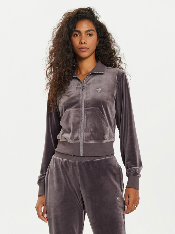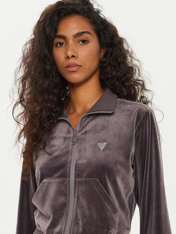 Ženska tamnosiva Guess dukserica sa patetnim zip zatvaračem i logom od cirkona