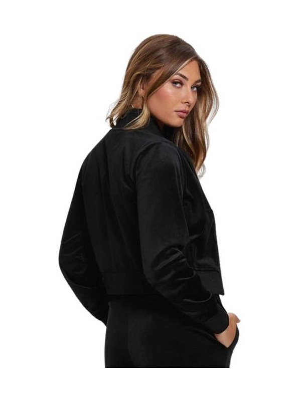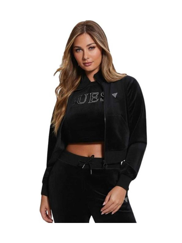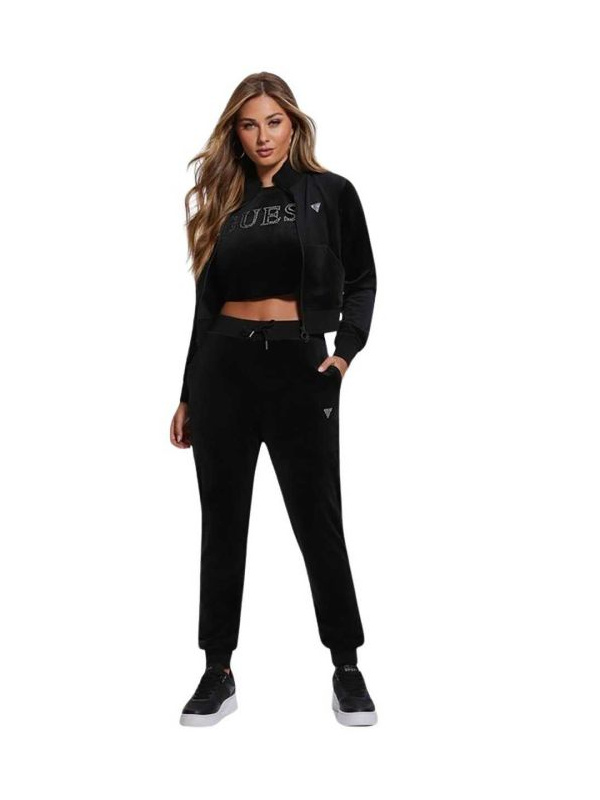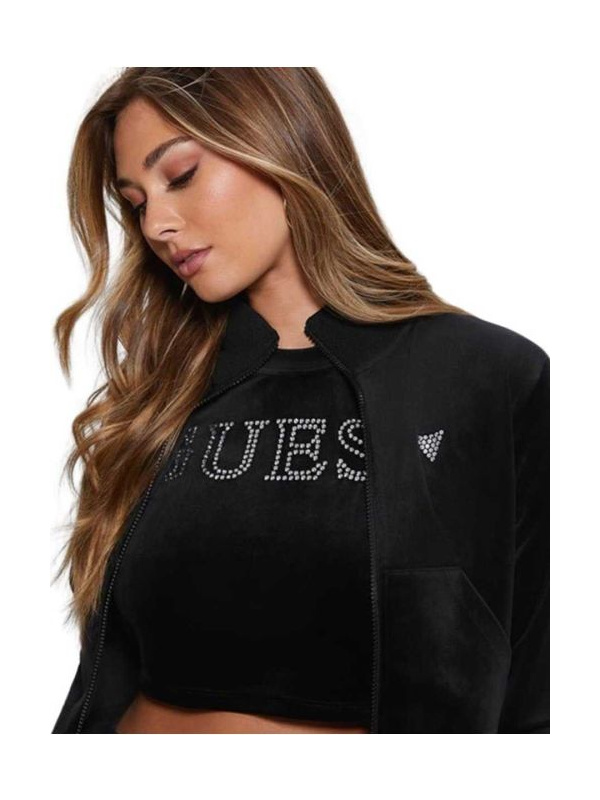 Ženski crni Guess Athleisure Couture plišani duks