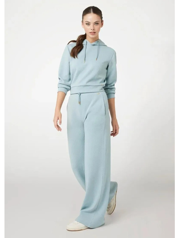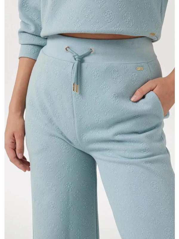 Donji dio Guess Palazzo ženske svijetloplave trenerke ispunjene logotipima