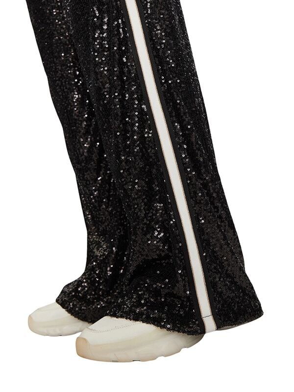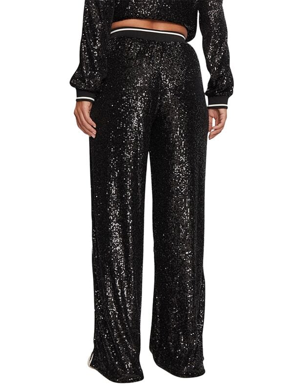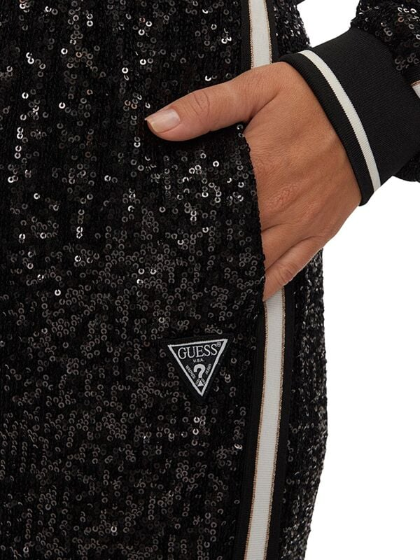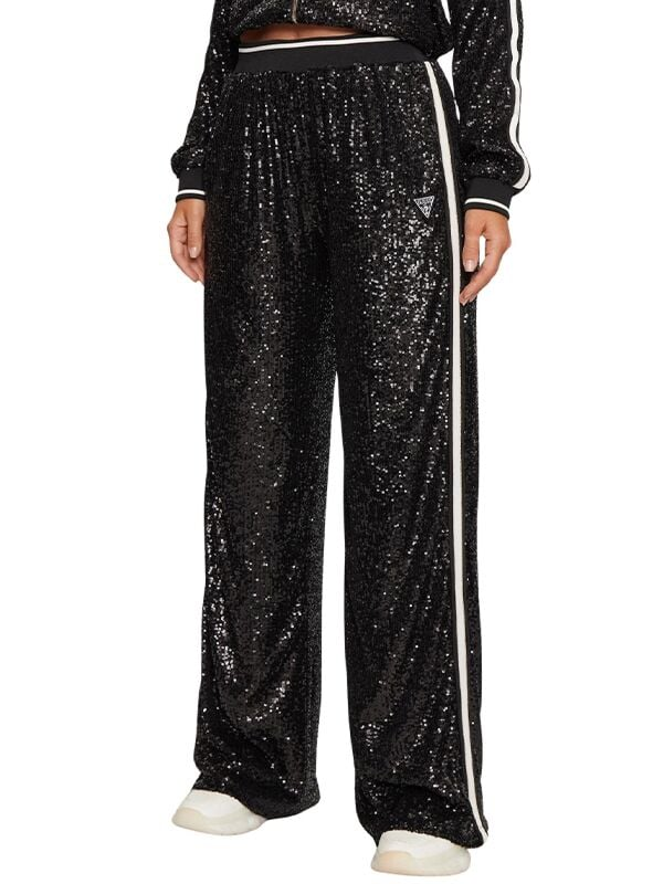 Donji dio ženske crne šljokičaste Guess trenerke širokog kroja