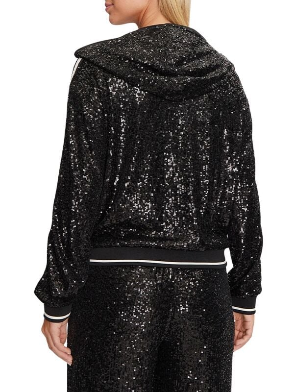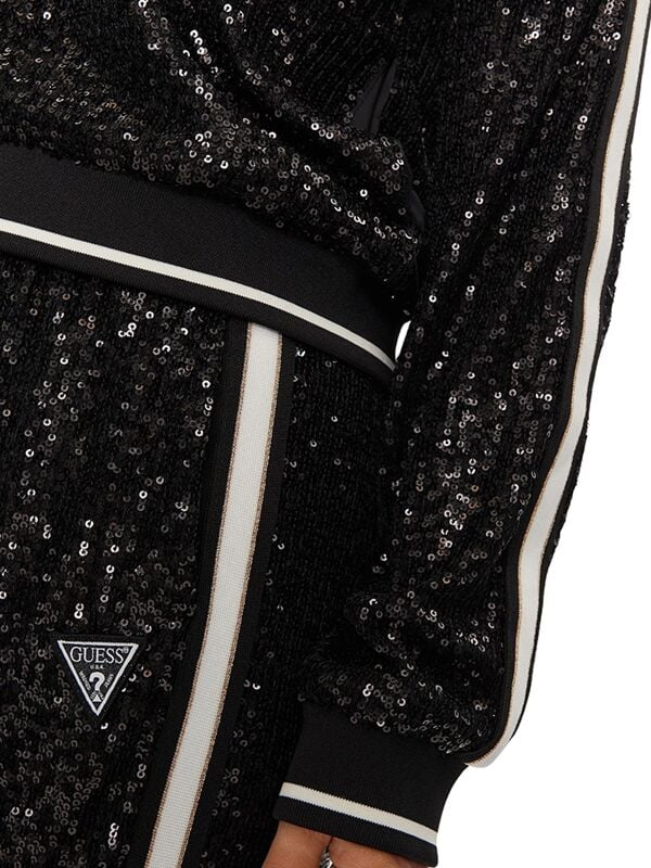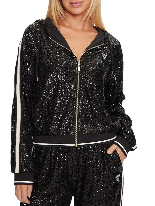 Gornji dio ženske crne šljokičaste Guess trenerke s logom i kapuljačom