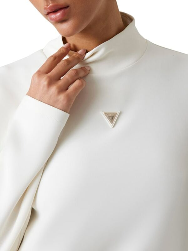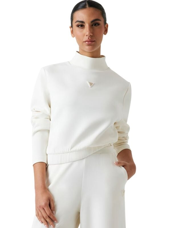 Ženska bijela Guess Olympe dukserica s visokim ovratnikom i logom