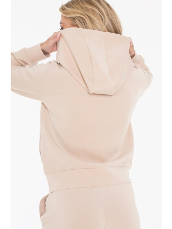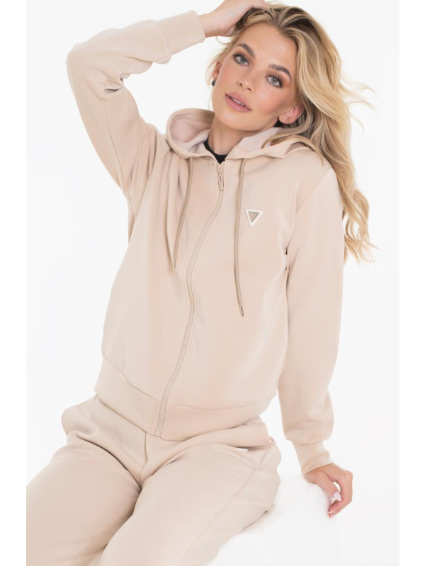 Ženska Guess bež dukserica s kapuljačom, zip kopčanjem i logom na prsima