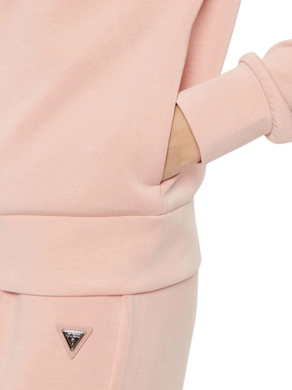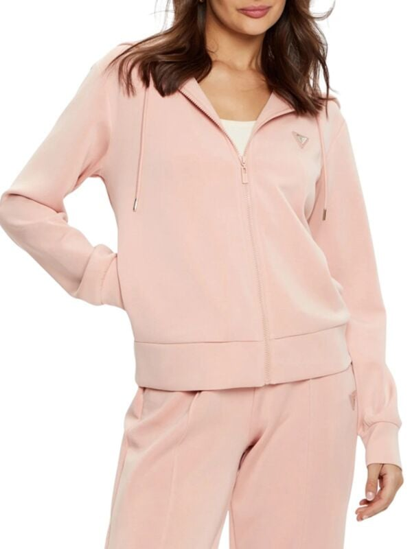 Ženski rozi Guess duks s kapuljačom, vezicom i logom