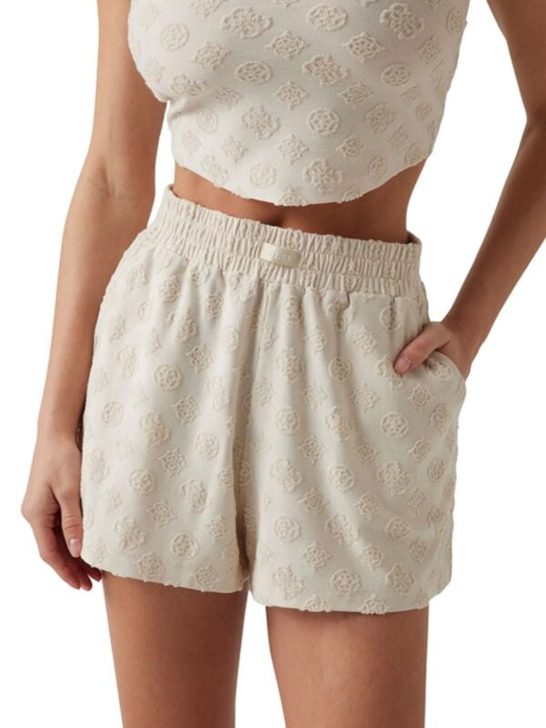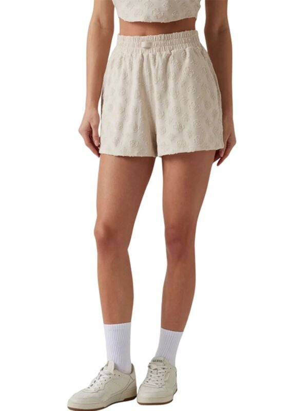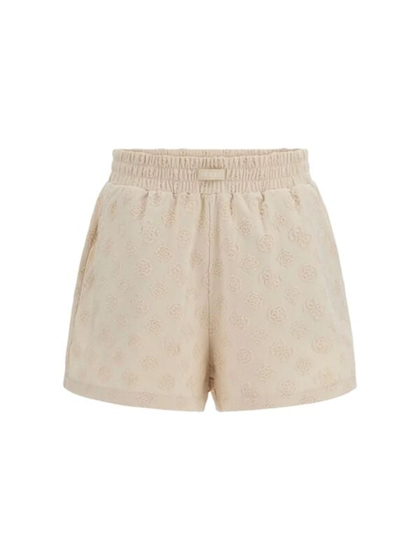 Ženski Guess bež šorc s teksturiranim logo dezenom i elastičnom trakom