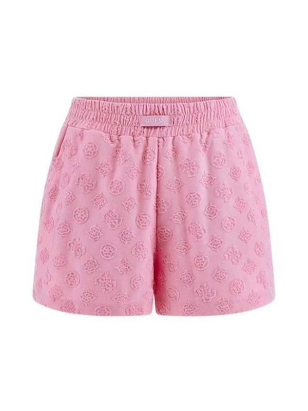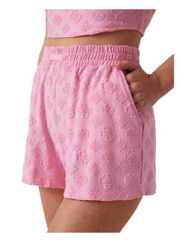 Ženski rozi Guess šorc sa all-over reljefnim monogramom