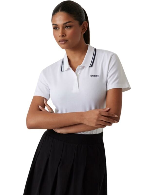 Ženska bijela Guess polo majica kratkih rukava s logom na prsima