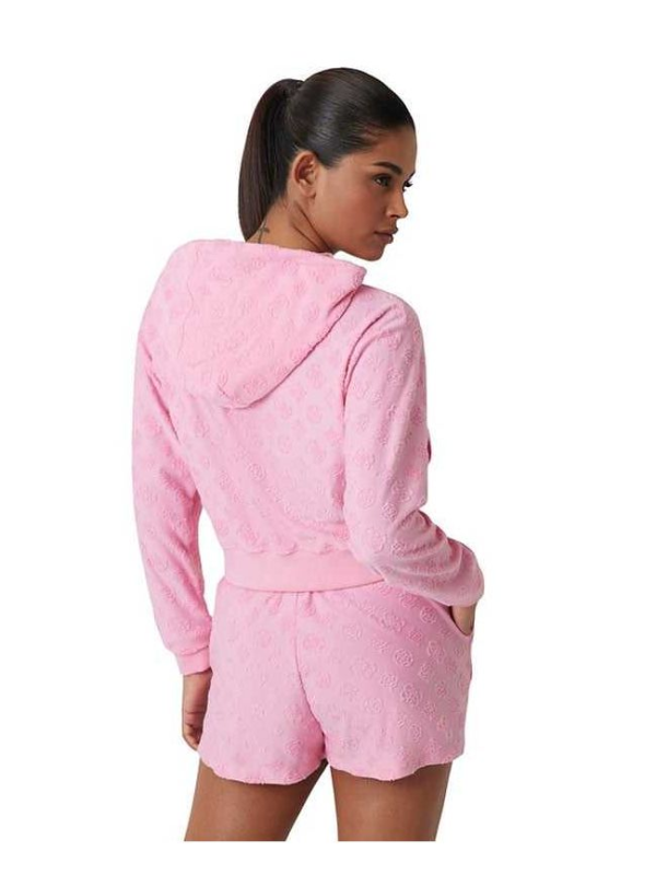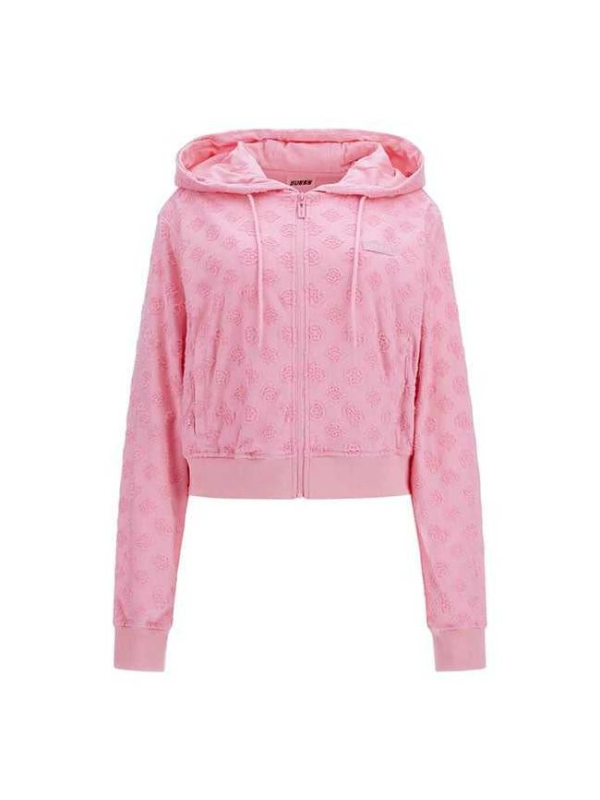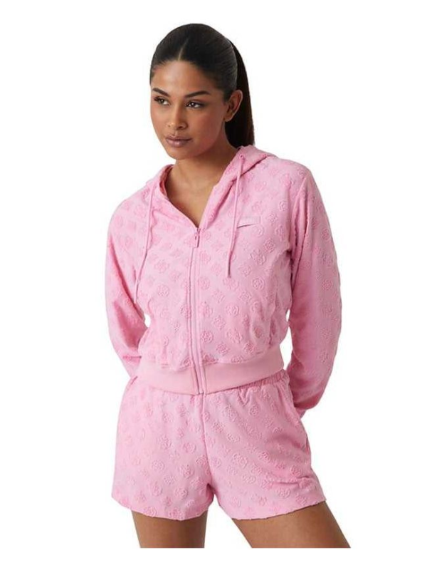 Ženska roza Guess dukserica s kapuljačom i zipom