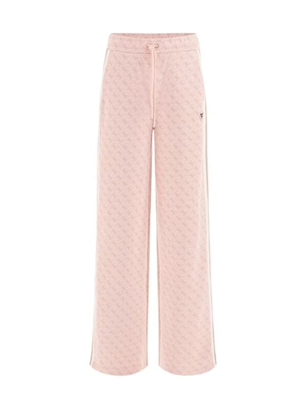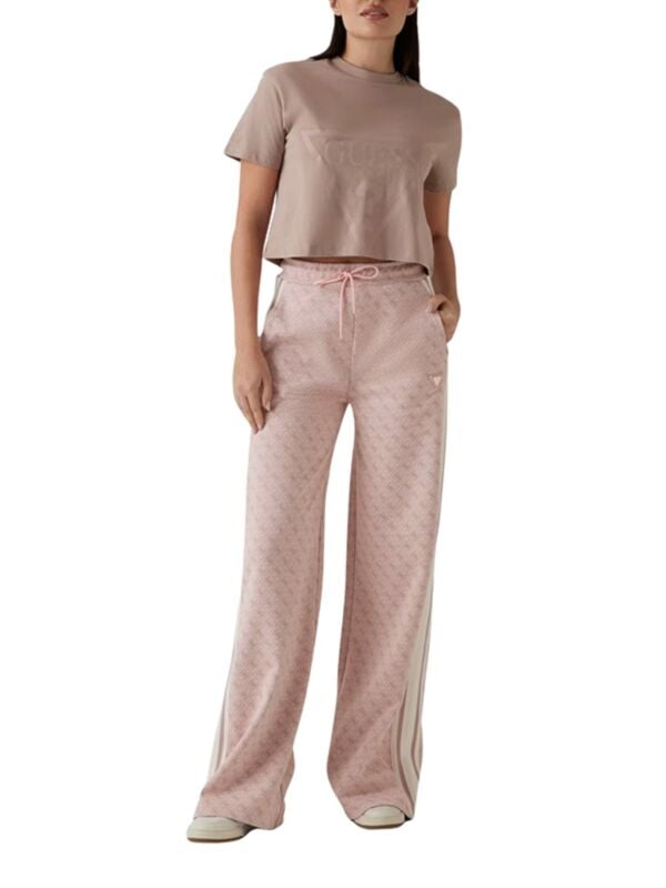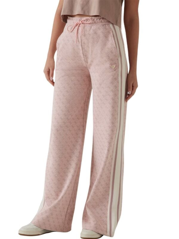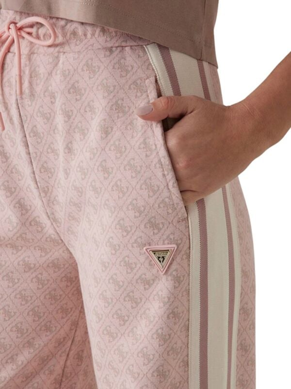 Donji dio ženske roze Guess trenerke s elastičnim strukom, vezicom i all-over logo printom