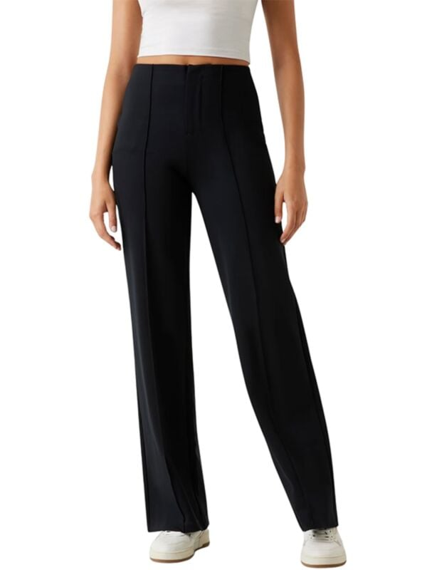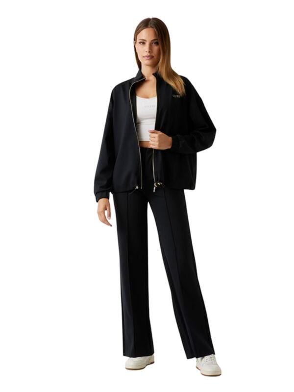 Ženske crne Guess hlače s crtom, visokim strukom i zvonastim nogavicama